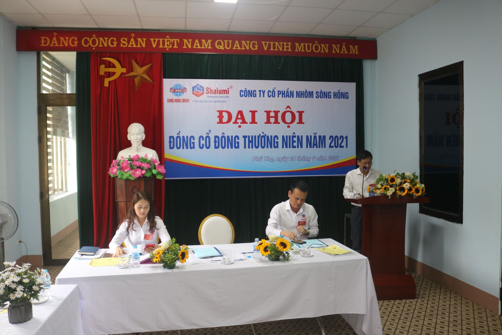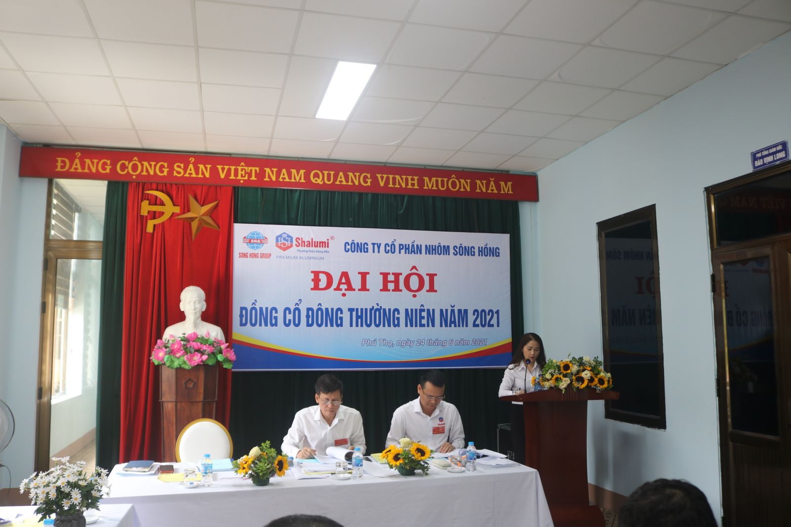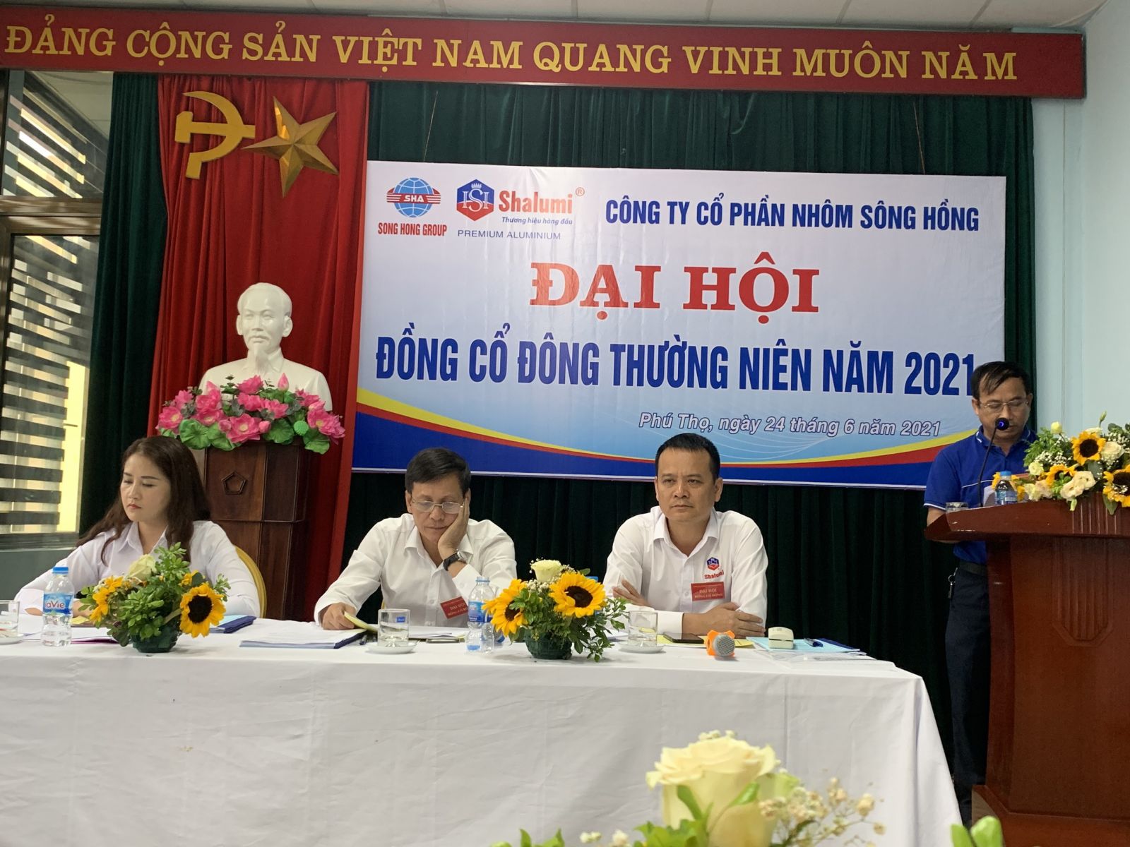 Ngày 24/6/2021 tại hội trường Công ty cổ phần Nhôm Sông Hồng, phường Bến Gót, Thành phố Việt Trì đã tổ chức đại hội đồng cổ đông năm 2021,  tham dự Đại hội, có các đồng chí trong HĐQT cùng 119 cổ đông và người được ủy quyền hợp pháp đại diện cho 13.379.802 cổ phần tương ứng với 64.66% tổng số cổ phần có quyền biểu quyết tham dự Đại hội.