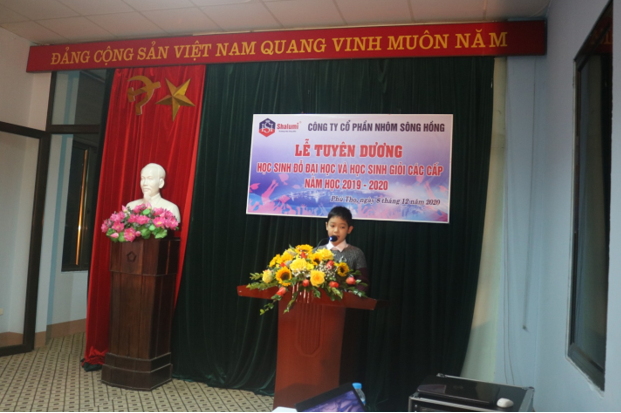 Ngày 8/12/2020 Công ty cổ phần Nhôm Sông Hồng (Shalumi) thành phố Việt trì, Phú Thọ tổ chức lễ tuyên dương cho học sinh là con của CB, CNV đỗ Đại học, đạt danh hiệu học sinh giỏi các cấp năm học 2019-2020;